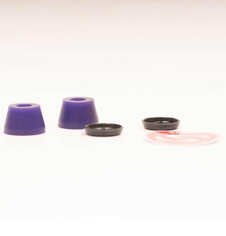 We also include our washers, as we believe that a bushing is only as good as the washer it works with. Our cup washers really help increase bushing rebound and reduce wheelbite, allowing a softer durometer bushing overall – which in turn gives more turn and lean.